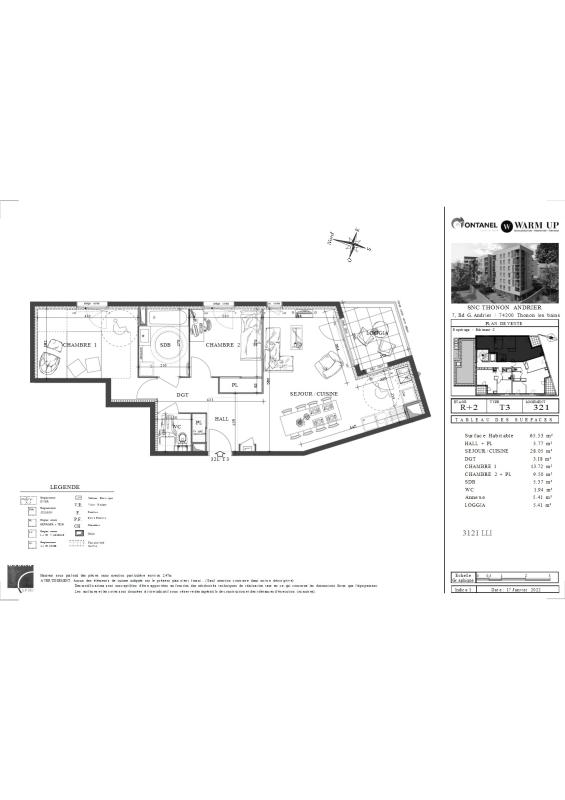 Andrier 74200 THONON LES BAINS. Ce logement dispose d’une loggia de 11m2. Le