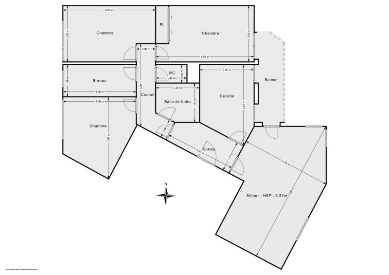 Ce logement comprend une entrée, un séjour, une cuisine, 3 chambres, une salle de bain, des WC ainsi qu’un balcon.